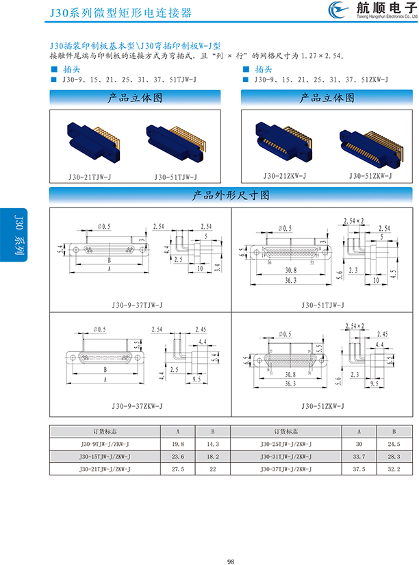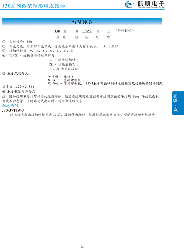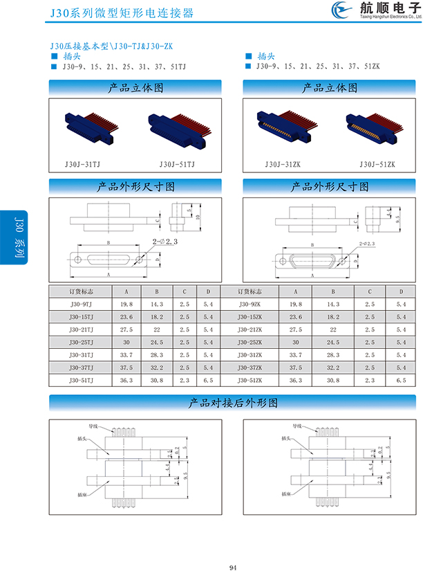 符合GJB2446《外殼定位超小型矩形電連接器總規(guī)范》(相當(dāng)于美軍標(biāo)MIL-C-83513),可與美國MDM系列產(chǎn)品和國內(nèi)同類產(chǎn)品互換,在J30系列產(chǎn)品的基礎(chǔ)上增 加了鋁合金外殼與各種鋁合金尾夾;采用絞線式插針 (俗稱麻花針),單個(gè)接觸件接觸點(diǎn)達(dá)七個(gè),提高了產(chǎn)品的接觸可靠性;采用1.27mm網(wǎng)格,接觸件密度大、體積小、重量輕;現(xiàn)有9、15、21、25、31、37、51、66、74、100芯共十種型譜可供選用;適用導(dǎo)線線芯 截面積為0.07~0.15mm2,尾端可以根據(jù)用戶要求進(jìn)行 布線;本產(chǎn)品的鎖緊組件按與產(chǎn)品組裝在一起提供,如不需鎖緊組件請?jiān)诤贤凶⒚?;本系列產(chǎn)品滿足GJB2446《外殼定位超小型矩形電連接器總規(guī)范》的 要求;本系列產(chǎn)品的執(zhí)行標(biāo)準(zhǔn)如下:Q/ZHDZ GC-18《J30J系列微矩形電連接器詳細(xì)規(guī)范》。