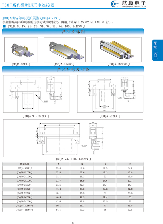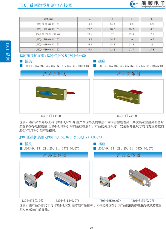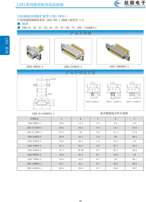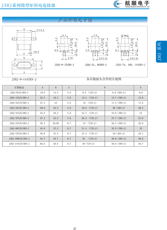 符合GJB2446《外殼定位超小型矩形電連接器總規(guī)范》(相當(dāng)于美軍標(biāo)MIL-C-83513),可與美國(guó)MDM系列產(chǎn)品和國(guó)內(nèi)同類產(chǎn)品互換,在J30系列產(chǎn)品的基礎(chǔ)上增 加了鋁合金外殼與各種鋁合金尾夾;采用絞線式插針 (俗稱麻花針),單個(gè)接觸件接觸點(diǎn)達(dá)七個(gè),提高了產(chǎn)品的接觸可靠性;采用1.27mm網(wǎng)格,接觸件密度大、體積小、重量輕;現(xiàn)有9、15、21、25、31、37、51、66、74、100芯共十種型譜可供選用;適用導(dǎo)線線芯 截面積為0.07~0.15mm2,尾端可以根據(jù)用戶要求進(jìn)行 布線;本產(chǎn)品的鎖緊組件按與產(chǎn)品組裝在一起提供,如不需鎖緊組件請(qǐng)?jiān)诤贤凶⒚?;本系列產(chǎn)品滿足GJB2446《外殼定位超小型矩形電連接器總規(guī)范》的 要求;本系列產(chǎn)品的執(zhí)行標(biāo)準(zhǔn)如下:Q/ZHDZ GC-18《J30J系列微矩形電連接器詳細(xì)規(guī)范》。